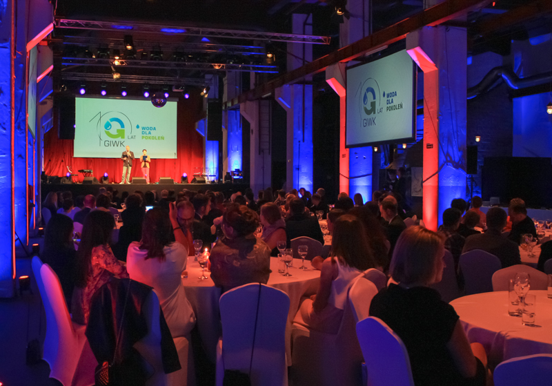 10 października 2014 r. w Centrum Stocznia Gdańska zorganizowaliśmy wydarzenie z okazji jubileuszu 10-lecia Gdańskiej Infrastruktury Wodociągowo-Kanalizacyjnej. Koncepcja eventu była spójna z tematyką i działalnością GIWK oraz hasłem przewodnim Jubileuszu – Święto Gdańskiej Wody. Scenografią oraz programem artystycznym nadaliśmy wydarzeniu najwyższą rangę z zachowaniem swobodnej i luźnej atmosfery. Wykonaliśmy aranżację oświetleniową oraz ruchome wizualizacje, które były wyświetlane na ekranach projekcyjnych. Klimatyczne światło i wizualizacje nadały elegancki charakter wydarzeniu jednocześnie podkreślając urok i architekturę industrialnego miejsca. Uroczystość poprowadzili Wojciech Tremiszewski oraz Szymon Jachimek, a skecze kabaretu Impro Skład nawiązujące do branży Klienta, wprowadziły Gości w doskonały nastrój.
